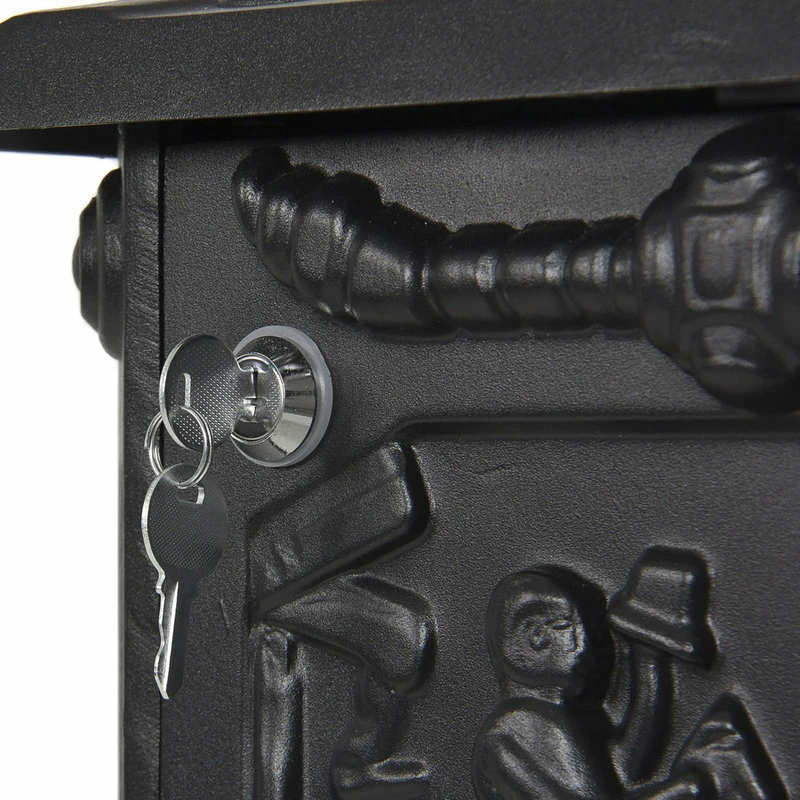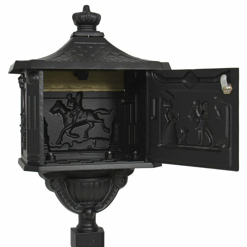 Making it a durable security mailbox that will last for years to come. It combines architecture and modern-day functionality. The mailbox features a historic βpony expressβ design, locking the door and an iron mail flap for letters.