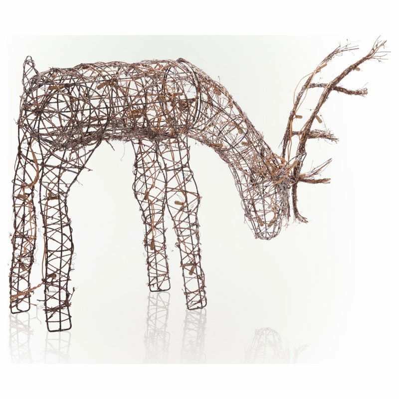 Upgrade your holiday dΓ©cor with Alpine Corporation’s 24″H Rattan Grazing Reindeer Lawn Decoration with Halogen Lights! This reindeer features a robust iron frame dedicated to keeping it standing upright, , making it the perfect Christmas decoration for your garden or yard. It includes 50 UL listed white halogen lights to brighten your lawn. Simply plug the pre-lit reindeer into the nearest outlet using the 5 ft. cord for a festive display for your outdoor landscape! The reindeer comes with 4 black-colored ground stakes to provide stability and make set up easy. You’ll love coming home each night to a beautiful sight and a touch of Christmas in your yard. At 2 ft. tall, the Alpine Corporation Rattan Reindeer measures 29″L x 7″W x 24″H, perfect for your holiday display. Alpine Corporation is one of America’s leading designers, importers, and distributors of superior quality home and garden decor products. Alpine Corporation’s award winning in-house design team continuously develops new and innovative “statement pieces” for your home and garden. Your indoor and outdoor living spaces will be the envy of the neighborhood with our wide assortment of fresh, fashionable and contemporary products, from beautifully crafted solar garden stakes featuring patented motion and fiber optic lighting technology to beautiful fountains and delightful bird baths and feeders.