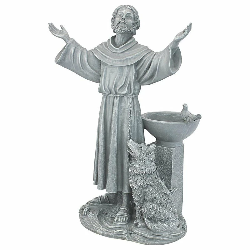 When the Italian patron saint of nature blesses your spiritual garden, abundance is sure to follow! Exquisitely sculpted from his raised hands to the animals at his feet, our over two-foot-tall, Toscano-exclusive St. Francis is cast in quality designer resin and finished in grey stone for enjoyment throughout the seasons. The birdbath at his side holds birdseed or collects rainwater for his feathered friends.