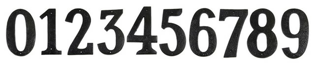 Decorative house numbers. Meets requirements for emergency response. Hand pounded appearance.