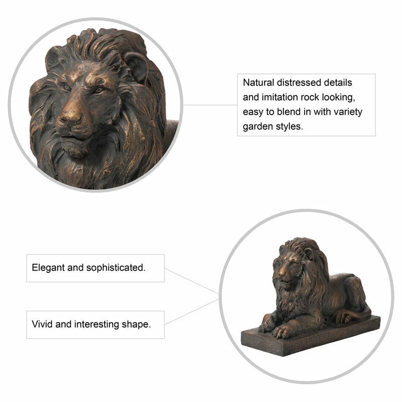 With this regal guardian lion statue at the entrance of your home, yard or garden, brings a feeling of stately and a touch of artistic to you space. This lion sculpture is made quality MGO and fiberglass that is very durable. This regal lion deisgn looks vivid and interesting, the handmade distressed details with imitation rock looking gives a sense of vintage and superior touch. It will be a great additon to your home, garden, backyard or patio.