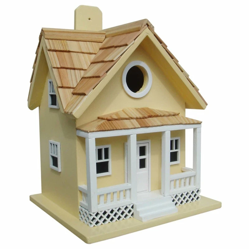 You might find a classic cottage style beach house like this in Ocean City (both Maryland and New Jersey!!) This light yellow, two story house features a lattice detail under the front porch, perfect for birds who need to store their miniature beach chairs. Our Beachside Cottage Birdhouse is constructed of exterior grade ply-board with poly-resin details. This style is a fully functional birdhouse with removable back walls, drainage, ventilation, mounting bracket and a 1 1/4″ entry hole. The convenient, swing-up paddle-board attached to the back makes hanging this beautiful birdhouse as easy as a walk along the seashore. Item Dimensions: 9 H x 10″ W x 9 D.