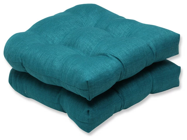 Relax in style and comfort on this set of weather and UV-resistant outdoor wicker seat cushions. Infused with a solid teal blue color, this set of wicker seat cushions will be a charming and functional extension to your outdoor patio or sunroom.
