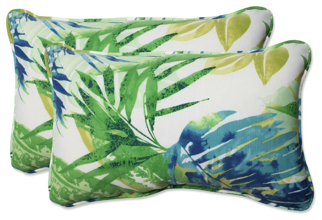 Feel like you’re in the tropics with this fun, leafy print in bold watercolor shades. From grass green to Atlantic blue this pattern pulls together a multitude of forest shades on a creamy off-white slub background. See this bright foliage echoing the palm leaves from outside your beach house and you can almost hear the warm tropical breeze filtering through the leaves. This pair of rectangular throw pillows adds a wild, tropical feel to any surface they’re placed on.