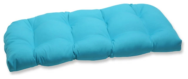 Relax in style and comfort on this weather and UV-resistant outdoor wicker loveseat cushion. Infused with a solid turquoise color, this wicker loveseat cushion will be a charming and functional extension to your outdoor patio or sunroom.