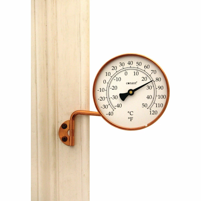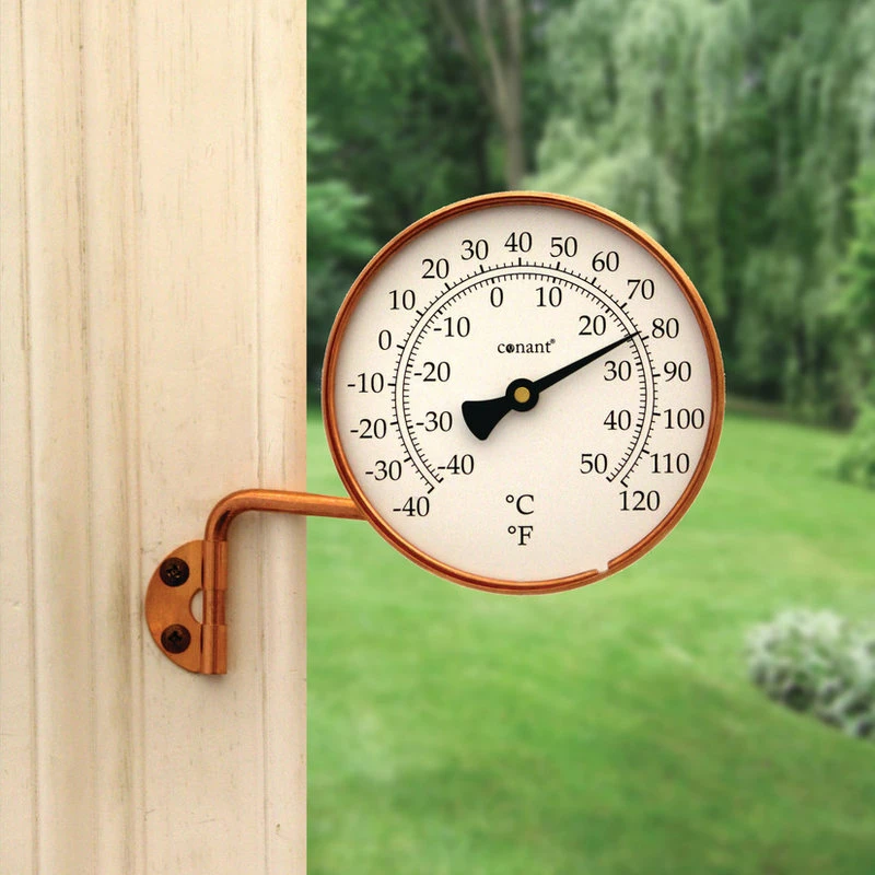 This handsome Copper Weather Station has a thermometer that measures temperature on both Fahrenheit and Celsius scales in an easy-to-read format. 3.5 inch long swivel arm and mounting bracket are included with the copper weather station for simple installation. The swivel arm of the copper weather station allows for convenient placement and viewing. The copper weather station is crafted of solid copper with a living finish (over time this product will age gracefully into a nice patina and eventually, a stunning verdigris.) With a German engineered mechanism, the copper weather station has quality construction that is guaranteed for life.