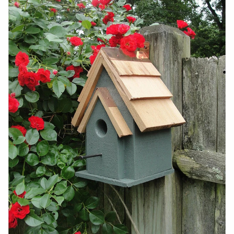 - A Coppertone mounting tab makes it easy to mount on any flat surface, such as a fence post, railing, or tree.